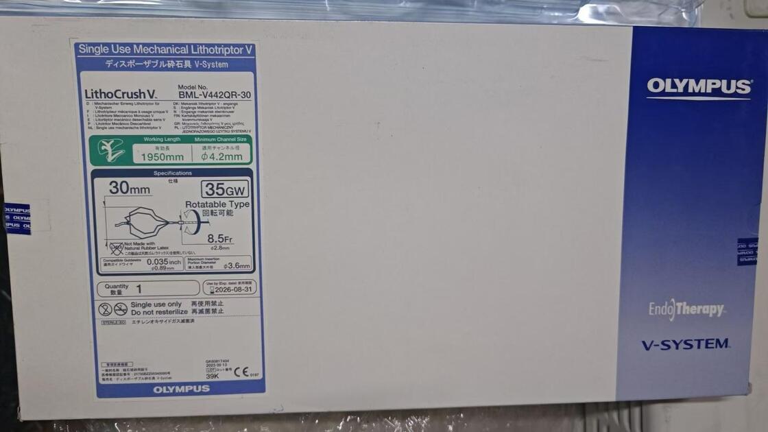 Le lithotriteur mécanique à usage unique Olympus BML‑V442QR‑30 V‑System est un dispositif médical utilisé lors de procédures endoscopiques pour écraser mécaniquement les calculs (calculs), en particulier dans les voies biliaires, lors de chirurgies mini-invasives. Il est conçu pour être utilisé une seule fois, puis jeté, plutôt que réutilisé.